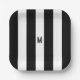 Black & White Cabana Stripe Minimal Monogram Paper Plates