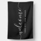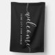 House Flag featuring the word "Welcome" in modern calligraphy script and which you can personalize with your street address all against an editable background color (click customize and change each side's background color) that's perfect for your own home or your rental property, hotel, bed and breakfast, etc.