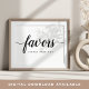 This elegant yet simple sign invites wedding or party guests to take a favor. Personalize with two lines of custom text in crisp black calligraphy and block lettering (shown with "Favors; please take one").