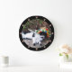 BLACK WHITE CAT AND HARLEQUIN HAT Masquerade Party Large Clock