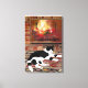 Black White Cat Lying front of Fireplace Canvas Print