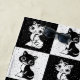 Black and White Checkered Monogram illustration Kitty Cat Block Print Pattern Design