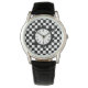 Watch: Black and White colour square checked pattern - retro design fashion watch