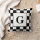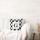 Black White Checkered Border Pattern with Monogram Throw Pillow