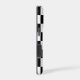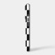 Shock absorbing iPhone case features a sleek black and white checkered pattern made of rows of alternating white and black squares.