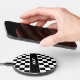 Black and white checkered pattern features a black banner across the center with your custom name in a cool white serif font. Add your name, monogram, or text in the sidebar to personalize it.