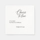 These customizable wedding napkins feature flowing black script "cheers to love" paired with classic serif details on a clean white background. The high-contrast typography offers a timeless and elegant accent for your table décor, blending minimal design with romantic charm.