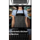 A black background decorated with a pattern of white chef hats. Personalize and add a name.