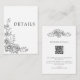 Black White Chic Botanical QR Code Wedding Details Enclosure Card