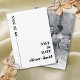 This elegant and understated Save the Date announcement showcases a chic and simple typography minimalist design. The use of black and white color scheme creates a sleek and modern look, while the abundance of white space emphasizes the minimalist style. A striking black vertical line on the left side adds a touch of sophistication, and when combined with the wedding date, it creates an illusion of extending towards the upper end of the card. The phrase "SAVE THE DATE" is prominently displayed in bold typography, drawing attention to the important message, while the essential details are kept concise and clear. On the back of the card, a beautiful black and white photo of the couple adds a personal touch to the design, completing the overall aesthetic.