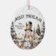 “Merry Christmas” is displayed in black text at the top in a slight arch, with space just below to the left, tucked into the artwork, for your family name or a short custom message. The same design appears on both sides of the ornament, making it a lovely keepsake from every angle.
