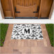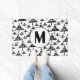 Black White Christmas Tree Pattern Monogram Doormat. Modern holiday design with a modern and abstract Christmas tree pattern in black and white colors. Add your monogram. Great Christmas gift idea for your friends and family and perfect Christmas holiday decor for your home.