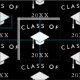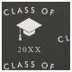 Black and white fabric with a minimalist graduate design with Class of [YEAR] and the white silhouette of a graduation cap.