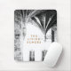 A black and white classy chic mouse pad, featuring a vector illustration of gothic interiors with customizable text in the middle. Perfect for the lovers of travel, history, and architecture.