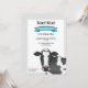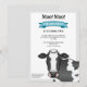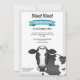 Destei's original cartoon illustration of a cute black and white cow looking towards the viewer with brown eyes. The overall color scheme is gray and black, but there is a blue banner giving the design a pop of color. Personalize the sample text areas with the details of your event.