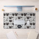 Black White Crazy Cat Faces Monogram Desk Mat