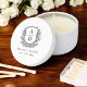 Illuminate your wedding day with the Modern Monogram Wedding Crest Soy Candle. Featuring a personalized monogram crest design, this scented candle adds a touch of elegance to your celebration. Crafted with premium wax and a delightful fragrance, it creates a warm and inviting atmosphere. Perfect as wedding favors or table decorations, it combines personalized charm with practicality. Enhance your special day with this stylish and fragrant candle that doubles as a memorable keepsake for your guests.