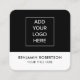 Simple, modern, minimalist black and white square business card with custom logo and QR code on the back.