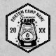 Custom summer camp patch with the camp name and year. Design in black and white with a camping torch.