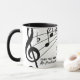 Add a custom message and a name to this modern, stylish black and white mug with musical notes to create a great gift for a musical instrument or singing teacher or student.