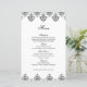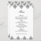 Black White Damask Arabesque Wedding Menu Card