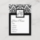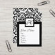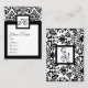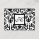 BLACK WHITE DAMASK FLORAL SQUARE MONOGRAM BUSINESS CARD