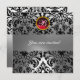 BLACK & WHITE DAMASK GEM STONE MONOGRAM red ruby Invitation
