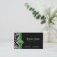 Black white damask green heart business card