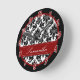Black & white Damask Lace Red Personalized Clock