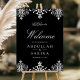 Elegant wedding welcome sign featuring a beautiful damask design.