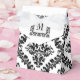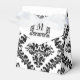Black, white damask pattern wedding favor box with monogram, featuring a classic damask pattern and your monogram in a frame with damask border. This modern, trendy and cute girly monogrammed favor box is perfect for other special occasions too such as bridal showers, birthday parties, baby showers etc. You can personalize it and add initials or other text.