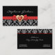 Black white damask pattern with red bow and jewel business card