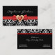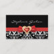 Black white damask pattern with red bow and jewel business card