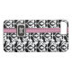 Black white damask, pink band with monogram Case-Mate iPhone case