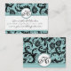 Black White Damask Pool Blue Trim Wedding Website Enclosure Card