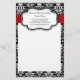 Stylish and posh black and white damask background design, with red ribbon and white frame shape. A cute wedding invitation and matching set collection. All Designs Copyright © 2012 www.CustomInvitesOnline.com