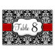 Adorable chic and sassy high contrast black and white girly damask pattern with a classic baroque feel, combined with the modern touch of a bright red accent strip that looks like a satin ribbon. Personalize it with any table number or other customization. Design Copyright © CustomInvitesOnline.com