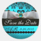BLACK & WHITE DAMASK RIBBON MONOGRAM Gemstone Classic Round Sticker