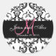 ink Black and White Damask Save the Date Stickers with Monogram and Bride and Groom Names and Wedding Date. Customize with Your Names, monogram and date. Elke Clarke©