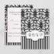 Invitation reply card with black and white damask swirls, birds pattern. Easy to customize - just change font, color, size and add your own message.