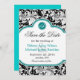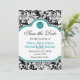 This listing is for a custom beautiful damask wedding stationery save the date featuring black and white damask with turquoise banner.