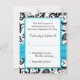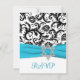 Black, White Damask with Aqua FAUX Ribbon RSVP Card