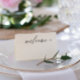 Elegant table cards in black and white with a delicate calligraphy script saying welcome at the top with room to write name and table number by hand. Add your names and wedding date on the back of the table cards.