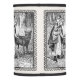 This lamp shade is is white with a repeated image of a black and white drawing of little red riding hood meeting the wolf in the woods under trees with her basket in an ornate black frame. Available as a shade or full lamp.