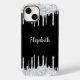 Personalize this trendy black and white dripping glitter iPhone 13 case. Available in other iPhone and Samsung cases also.