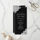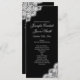 Black and White Elegant Wedding Programs with printed white lace designs in the corners. This is a two sided design. Just use the template fields to add your own wedding ceremony details or use the "Customize It" button to add or delete lines of text or move things around.