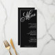 Black and white wedding reception menu with elegant script font. Personalize it with your event details.