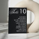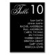 Black and white wedding reception table number seating chart with elegant script font. Personalize it as needed.