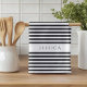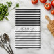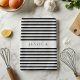 Personalized Black & White Farmhouse Striped Pattern Kitchen Towel.