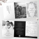Black and white hand-drawn fleur de lis spring flowers and butterflies monogram wedding all-in-one invitation with two photos and full meal options RSVP. Personalize this reply wedding invitation with your own wedding ceremony details, schedule, accommodation, and other information as well as three-course meal options, replies, and two of your favorite photos. Other colors and matching wedding items available. © Original hand drawing and design by Sarah Trett for www.mylittleedenweddings.com on Zazzle.